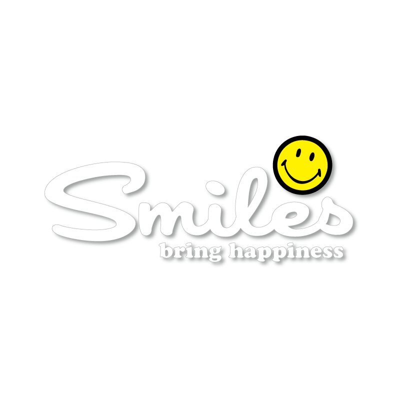 > (透明)ハッピー♪スマイル ステッカー 1枚 10cm ホワイト アメリカン スクーター キャリーケース ことわざ 名言 雑貨 デカール シール