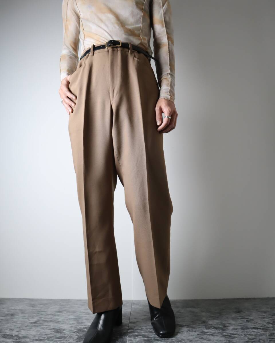 - P1K516 wide-straight vintage slacks brown 80s 90s ワイド ストレート レトロ スラックス ライトブラウン 茶系 W35