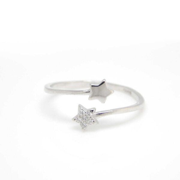 - 即決★送料無料★新品 極上の逸品 2連スターデザイン CZダイヤモンドリング ジルコニア シルバー925 プラチナ仕上 訳有品 XR-N6