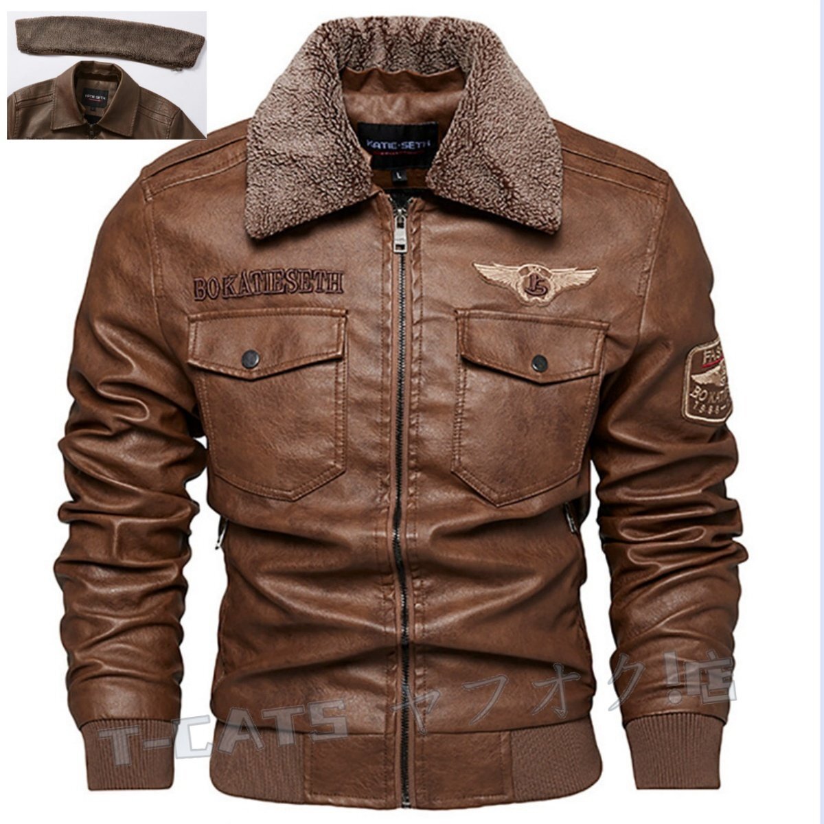 - ☆新品 ライダース ジャケット 裏ボア裏フリース ファー付き ブルゾン バイク バイカー アウター コート メンズ? 珈琲色 XL