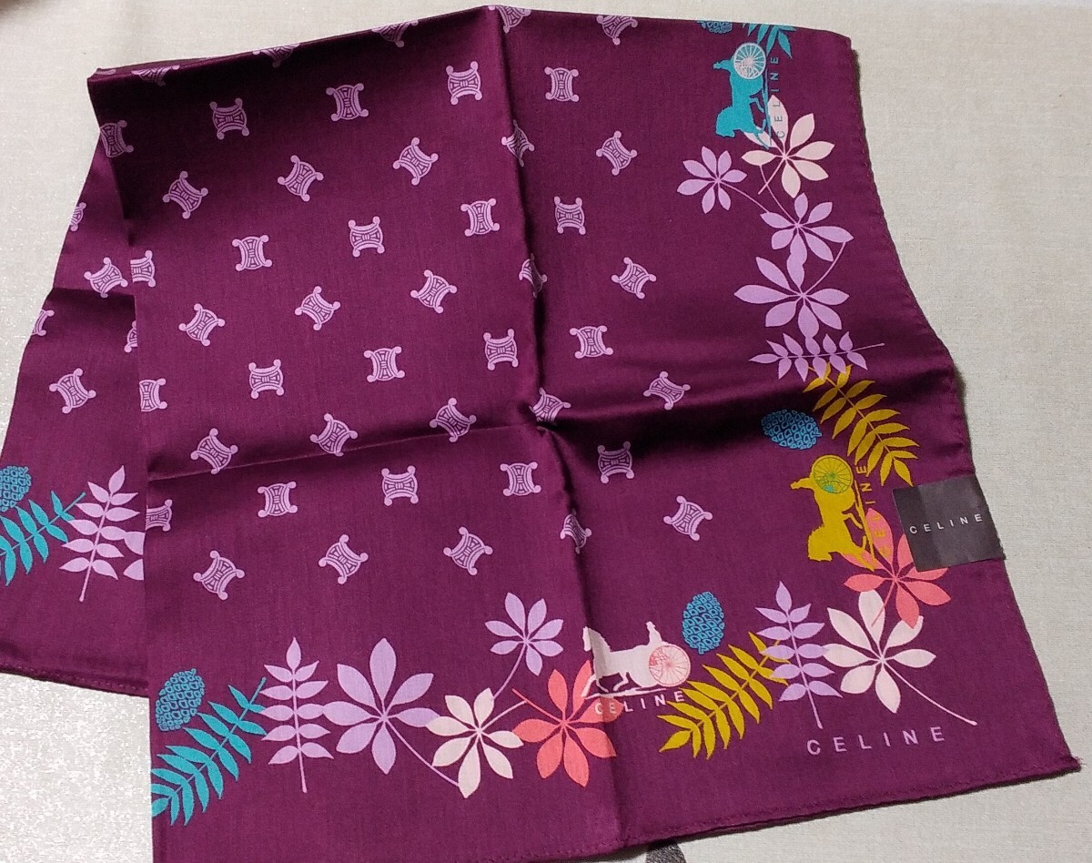 - 送料無料! セリーヌ 大判 ハンカチ 馬車 未使用品 ワインレッド 日本製