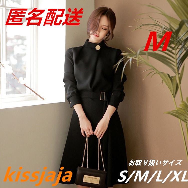 > レディース フォーマルドレス ワンピース パーティー 長袖 上品 結婚式 二次会 入園式 入学式 卒園式 卒業式 ブラック Mサイズ