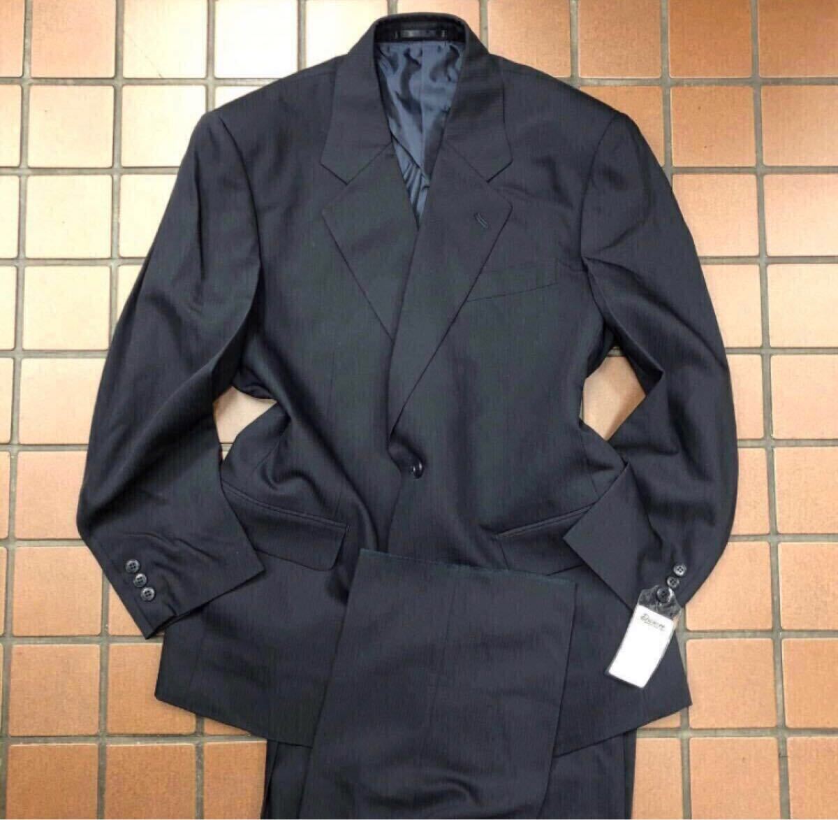 > 新品☆未使用【サイズBB4 M☆艶感】2Bシングルスーツ メンズスーツ ネイビー 背抜き センターベンツ 2タック セットアップ ストライプ