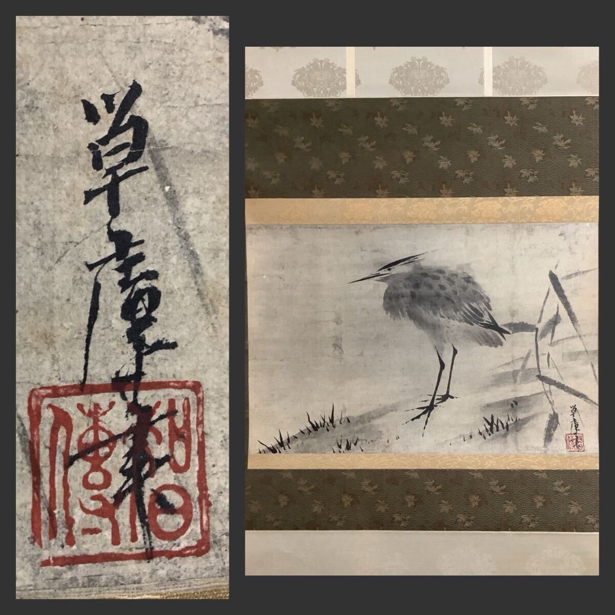 - 【模写】掛軸Fe753[単庵智伝 鷺図]紙本 工芸 印刷/花鳥画 日本画 水墨画 相阿弥師事 室町時代画家 国立博物館蔵
