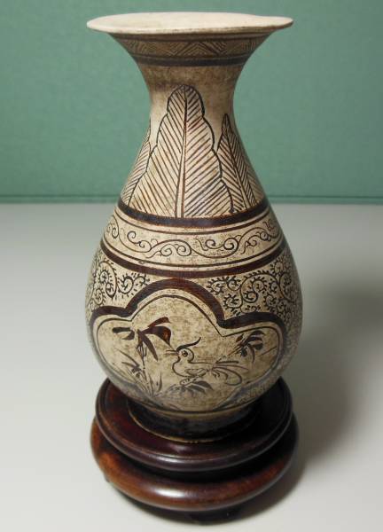 - 宋朝期 早期唐草 鉄釉絵 古壺