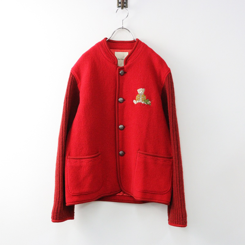 > メンズ カールヘルム Karl Helmut テディベア刺 ニットスリーブ サガラ刺ジャケット S/レッド 赤 ブルゾン【2400014267112】