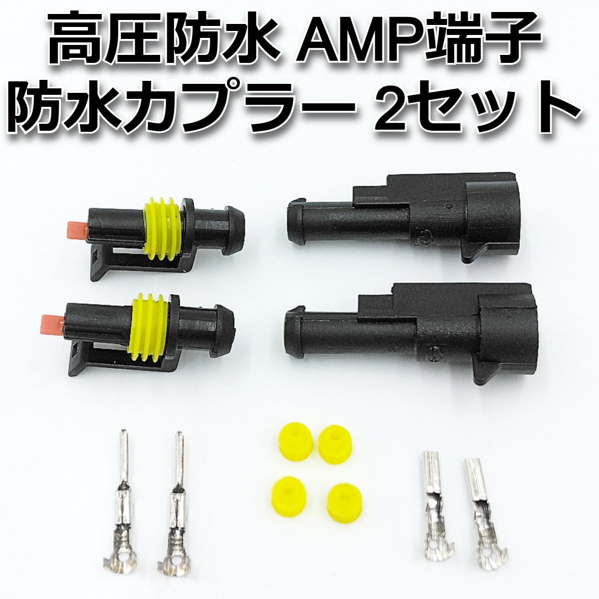 > 2個set★高圧配線用 防水 AMP端子 防水カプラー コネクター オスメス HID用 加工 補修に ライト 配線加工 コネクタ ヘッドライト フォグ