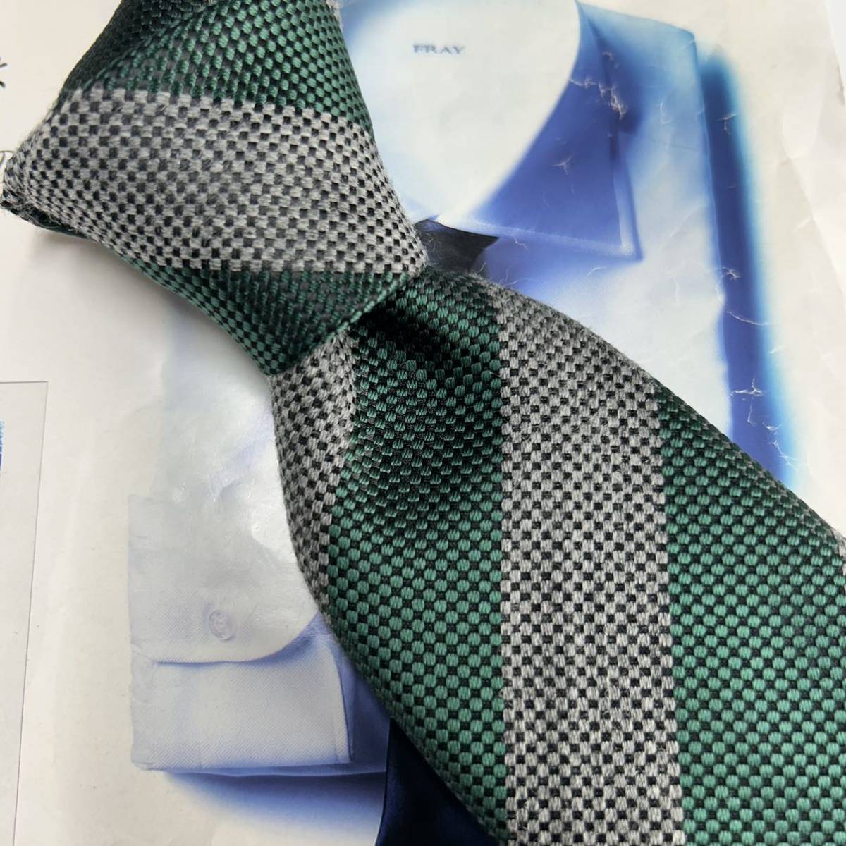 - 【新品】シルクウール グリーン×トップグレーストライプ