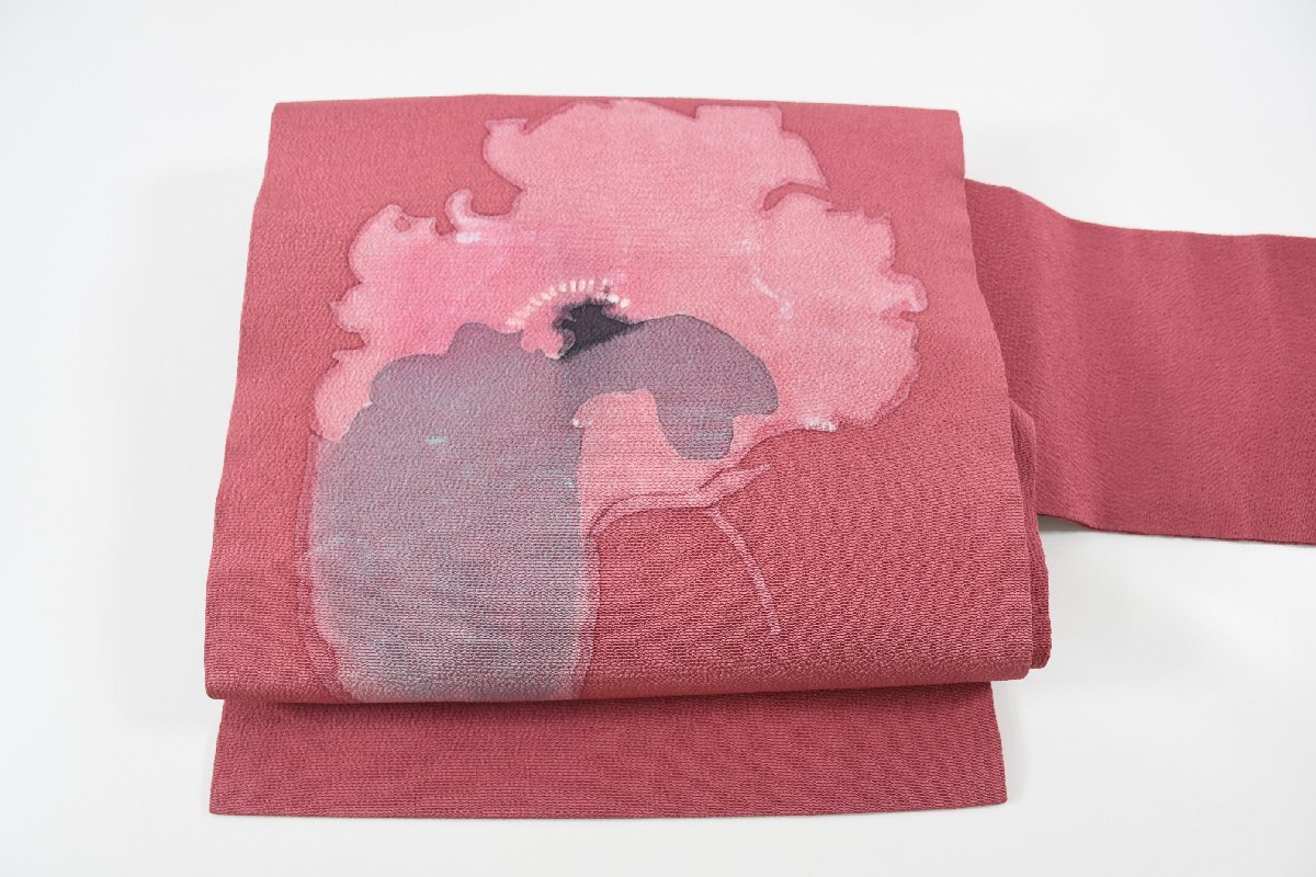 - 名古屋帯 ちりめん 花 作家 帯丈366cm ★着物屋 ne-14194 桜庭呉服店
