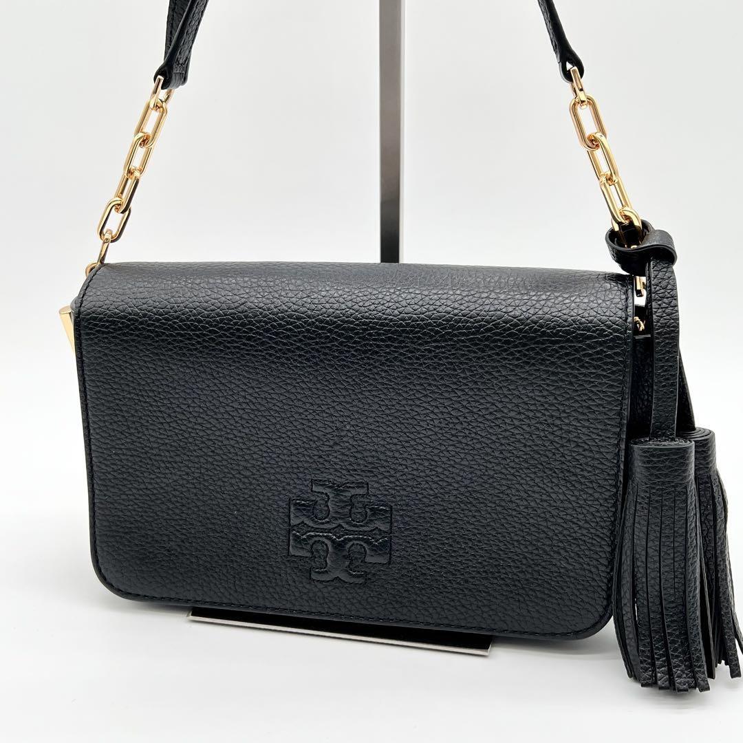 - 【美品】ToryBurch トリーバーチ Thea テア タッセル フラップバッグ ショルダーバッグ 斜めがけ クロスボディ ブラック HH000206