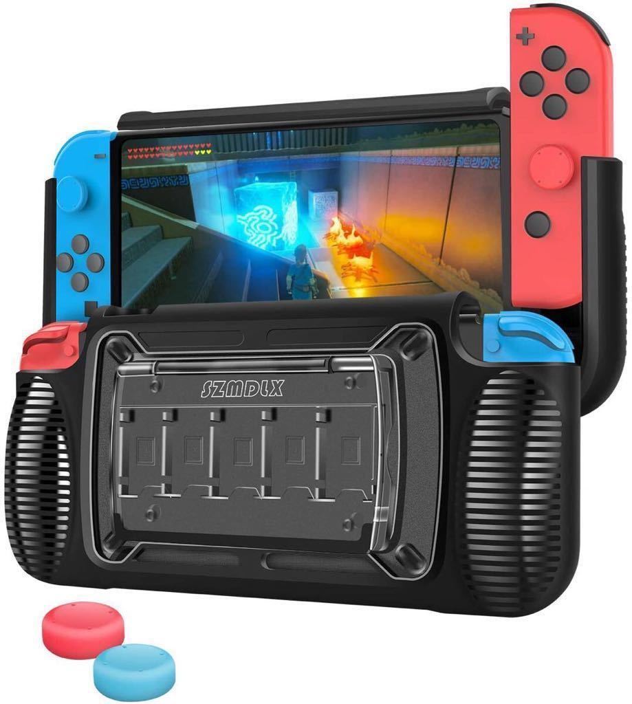 - Nintendo Switch カバー 任天堂スイッチ 7つゲームカード収納可能 ケース スタンド機能 【改良版Bluetoothトランスミッター対応設計 耐衝撃