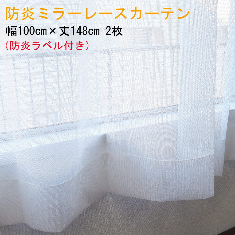 > カーテン レース 防炎加工(防炎ラベル付き) 幅100cm×丈148cm 2枚 ミラーレースカーテン