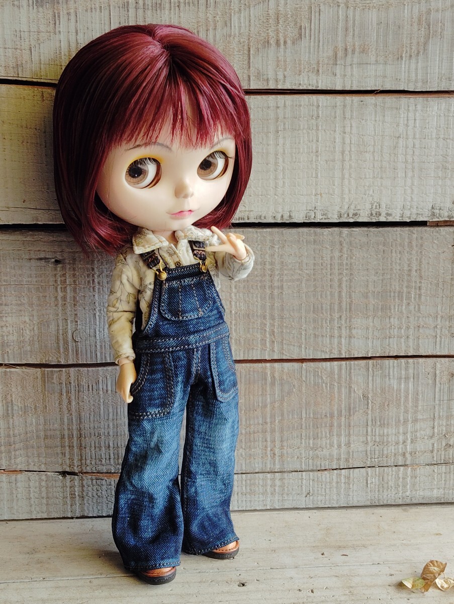 > デニムオーバーオールUSED加工16 ネオブライス リカちゃん オビツ ピュアニーモ ハンドメイド アウトフィット Blythe outfit