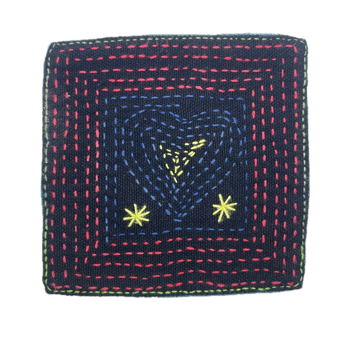 - エスニックモチーフ刺繍 アジアン雑貨手芸材料 プリミティブアート ハンドメイドコースター ラオスレンテン族 幾何学模様 ハート