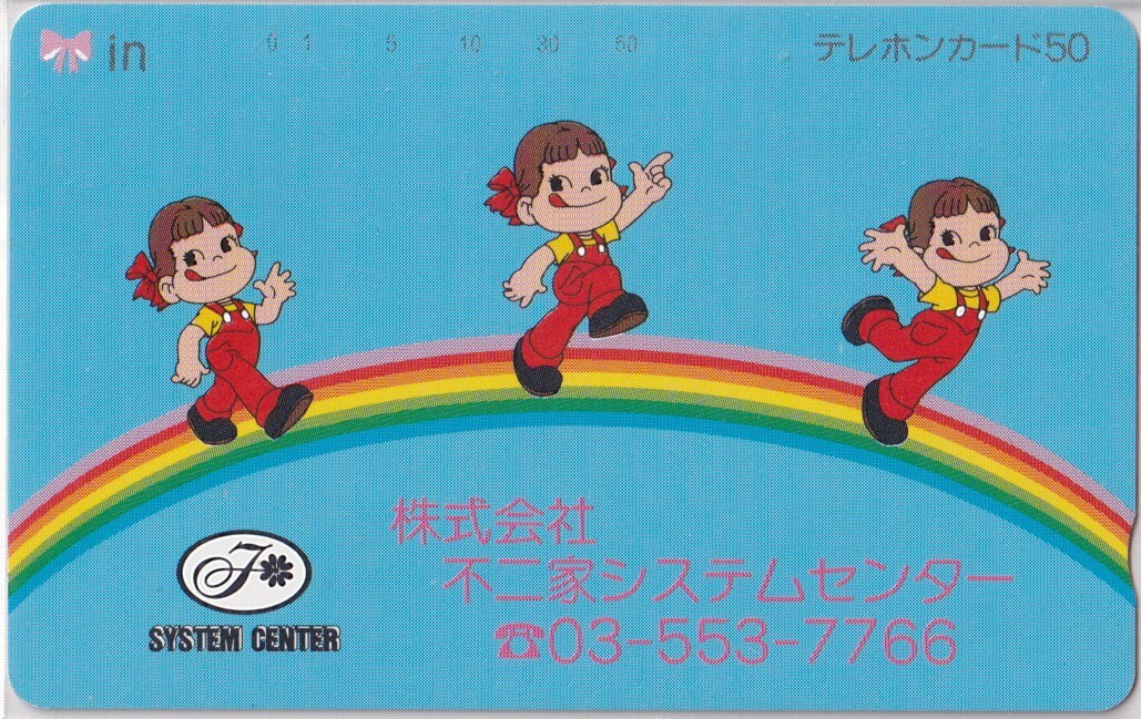 - =不二家ペコちゃん= 「システムセンター 虹」販促テレカ #72760