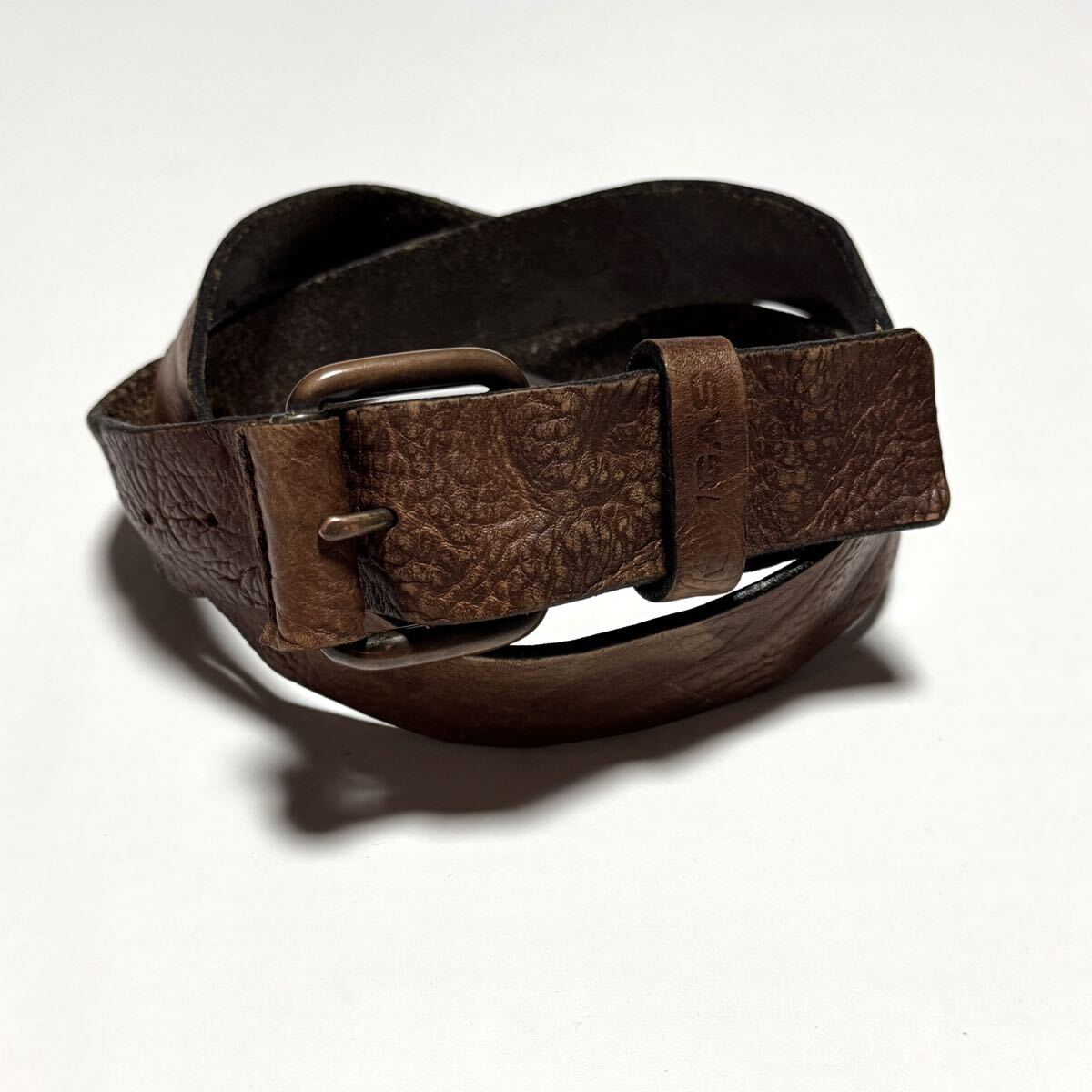 - w91㎝〜w104㎝ GAS レザーベルト 茶 メンズ 廃盤モデル グランジ バイカー ブラウン ハーレー パンクロック 即決