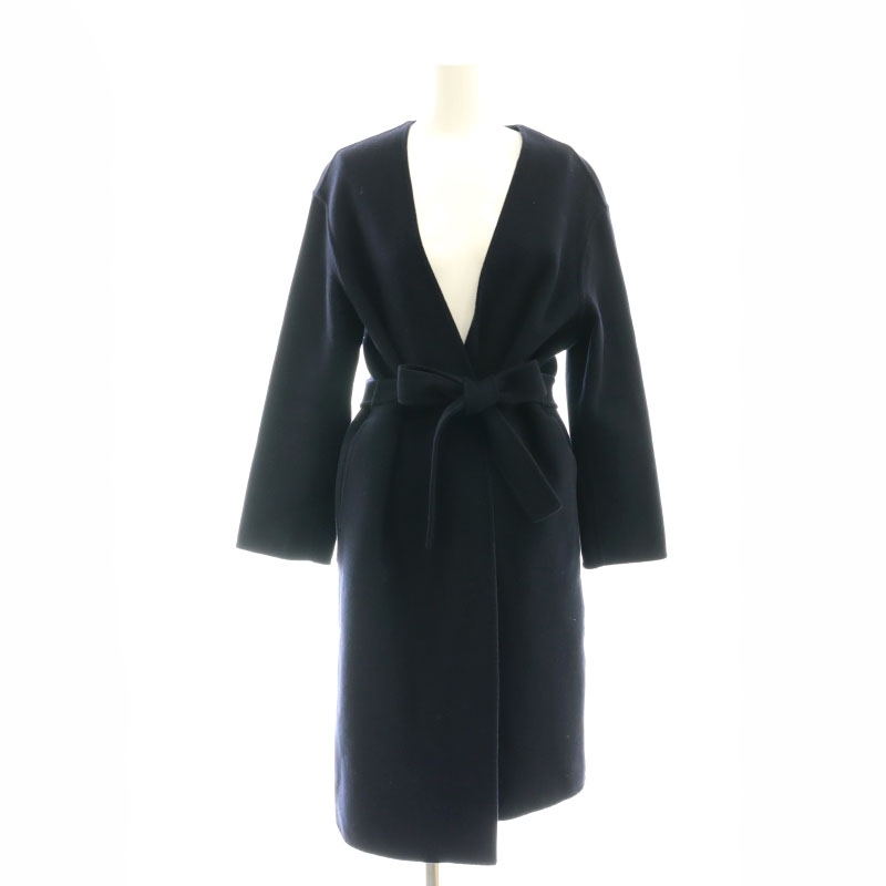 > セオリー Theory Luxe New Divide Collarless Coat ノーカラーコート ウール カシミヤ混 ベルト付き P 紺 /MI ■OS レディース