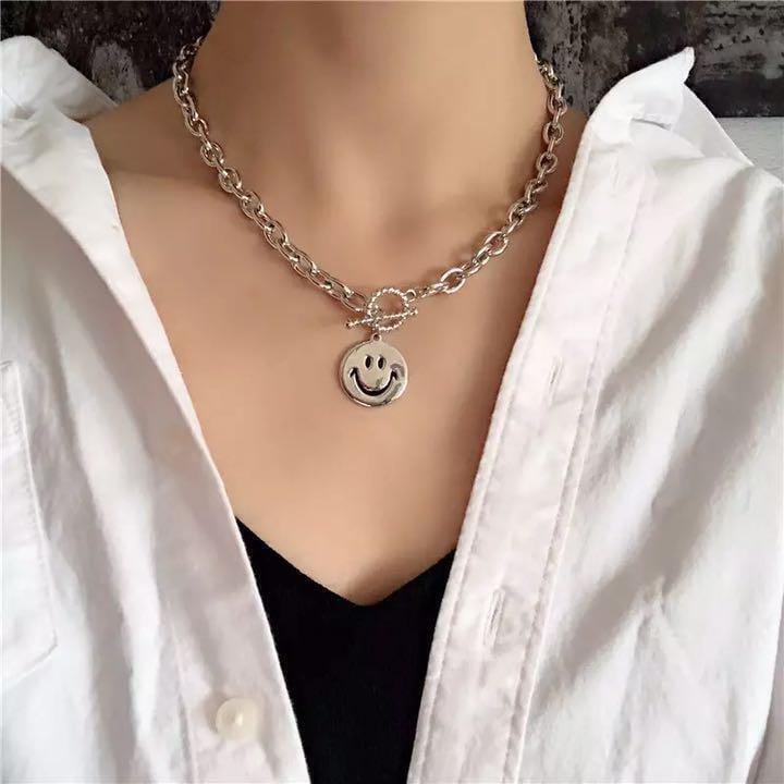 - スマイルネックレス ニコちゃん 韓国 ロック シルバー メンズ レディース