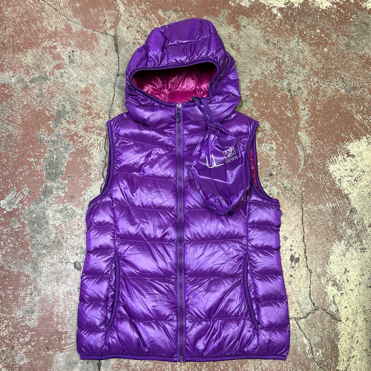 > UNIQLO ユニクロ ウルトラライトダウンベスト フーディ 光沢 パープル ピンク S レディース 収納袋付き 八g1