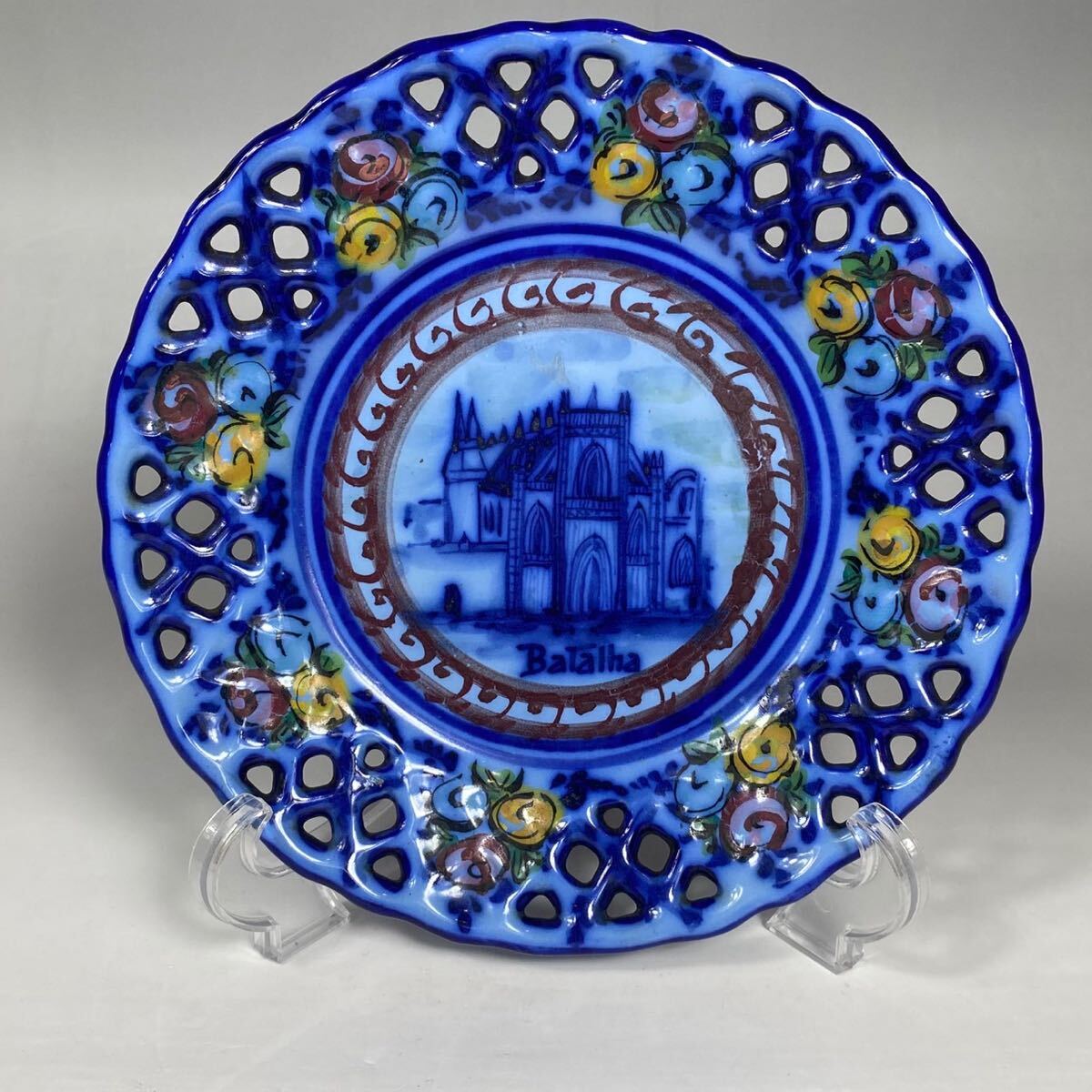 - アンティーク ポルトガル 飾り皿 プレート 透かし彫り 絵皿 インテリア 壁掛け 蚤の市