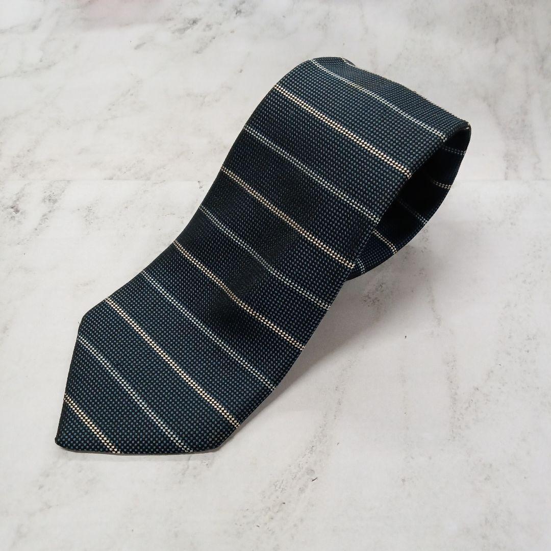 - フェアファクス ネクタイ 紺 水色+白ストライプ シルク100% 絹【n128】