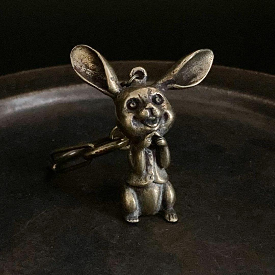 > 066 真鍮 キーホルダー うさぎ 願い ウサギ ビンテージ レトロ アンティーク 真鍮製 チャーム アクセサリー パーツ ハンドメイド アメカジ