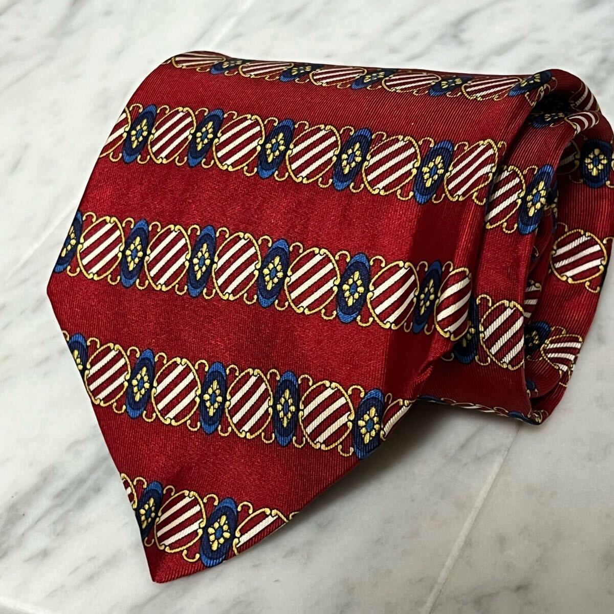 - 999円~ Christian Dior ネクタイ レッド ネイビー ドット 総柄 (R6)