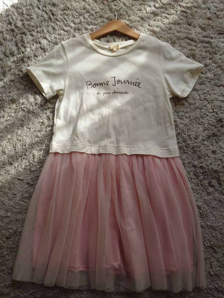 - HusHush*ハッシュアッシュ*ロゴカットソー半袖切り替え可愛いふわふわシフォンスカート*140cm*