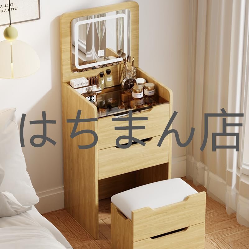 > 多機能です ラーとスツール付きのコンパクトな化粧台テーブル 3ギアのライトです 折りたたみ式です 収納戸棚 (60cm,原色です)