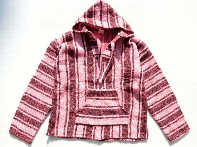 - ◆ メキシコ製 メキシカンパーカー Mサイズ ピンク ストライプ/ビンテージ オールド レトロ アメリカ古着 エスニック ブランケット ラグ