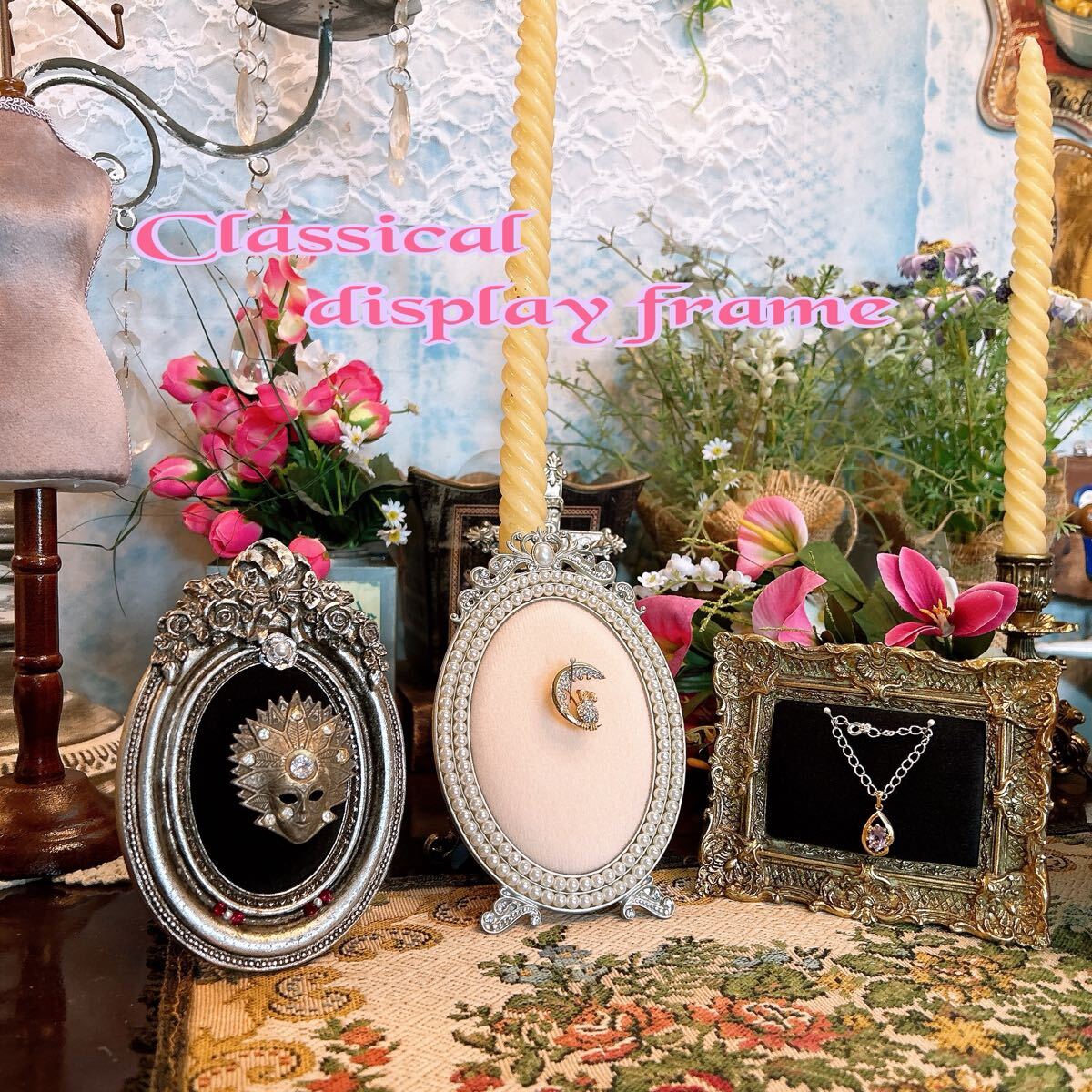 - アンティーク雑貨クラシカルチャームディスプレイフレームアクセサリーホルダー③オーバルパール#ロココ調#店舗什器#アクセスタンド