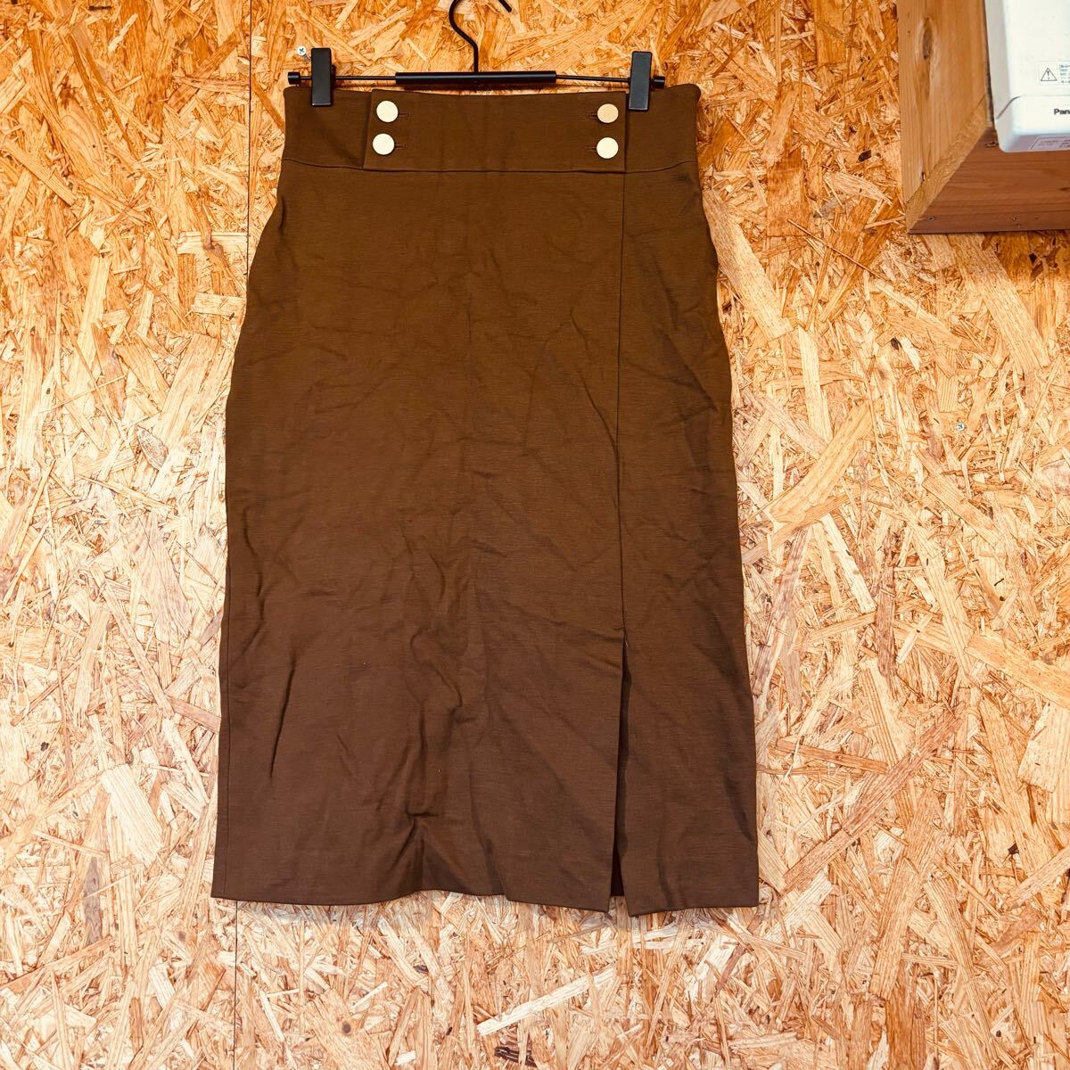 > 美品 GREEN LABEL RELAXING ひざ丈スカート ストレッチ ブラウン ウエストゴム ボトムス 3978