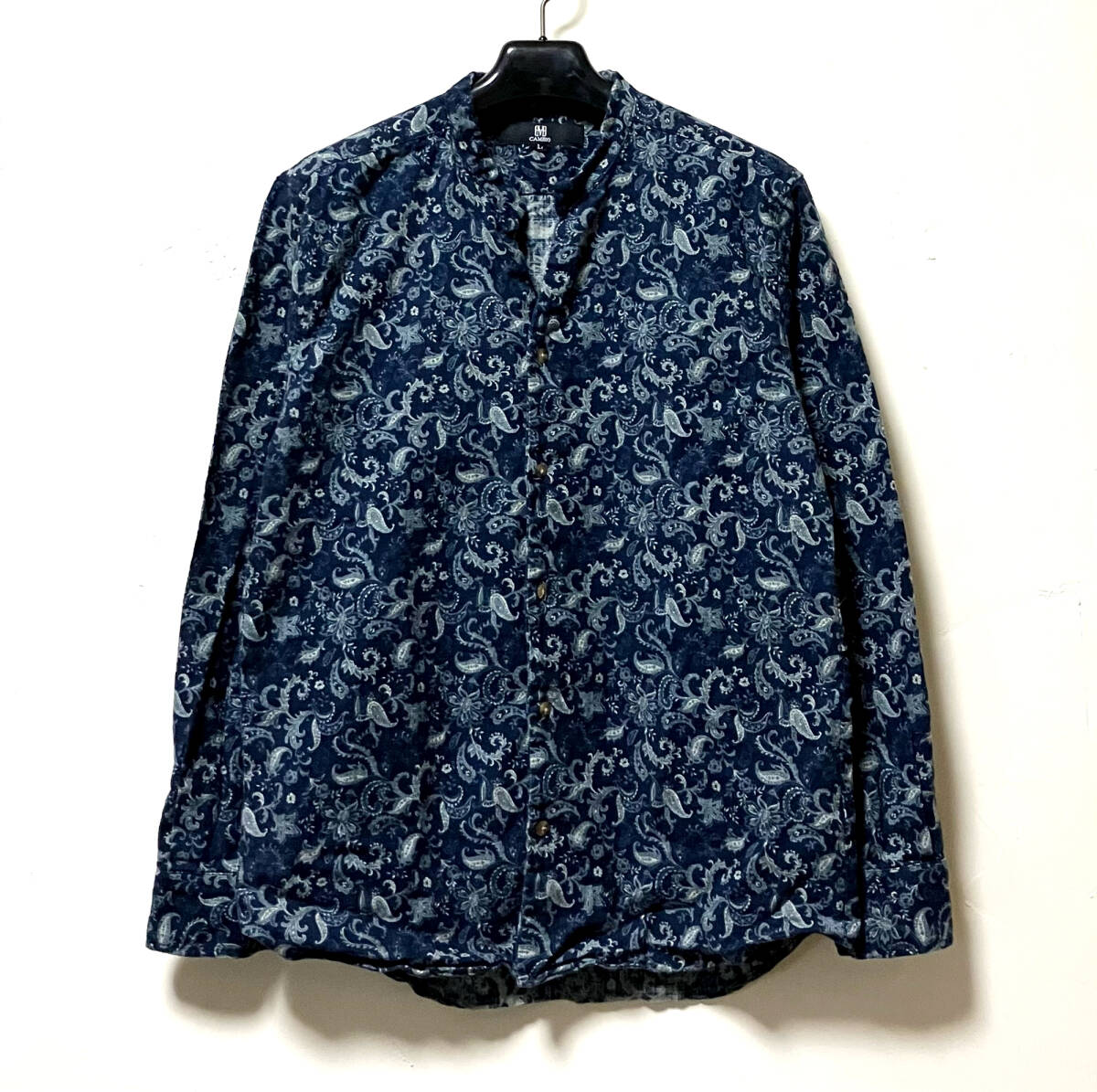 - ●美品 CAMBIO カンビオ ペイズリーシャツ ノーカラーシャツ NVY サイズL
