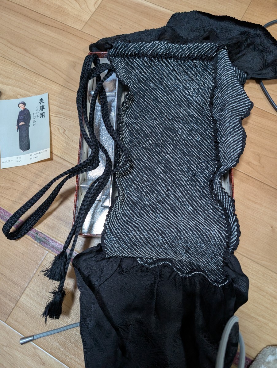 - 正絹 総絞り 和装小物 帯揚げ 和服久組紐と帯揚げ喪服用★1度使用