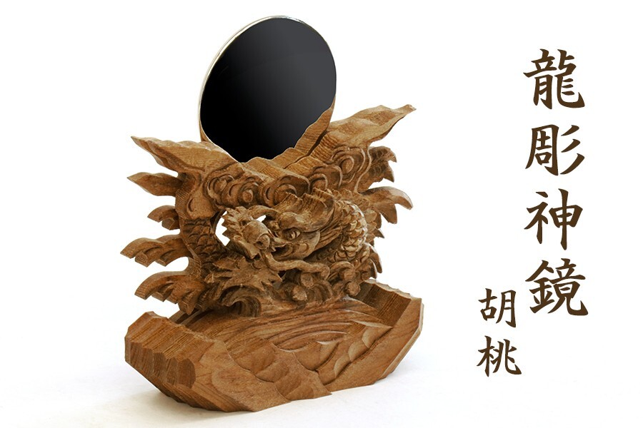 - 神鏡 龍彫り 2寸 ■ 手塗り 家具調 胡桃 竜彫 ■ モダン 神棚 神具 極上 彫り 依代 ご神体に 龍神 守護 家具調モダン神棚