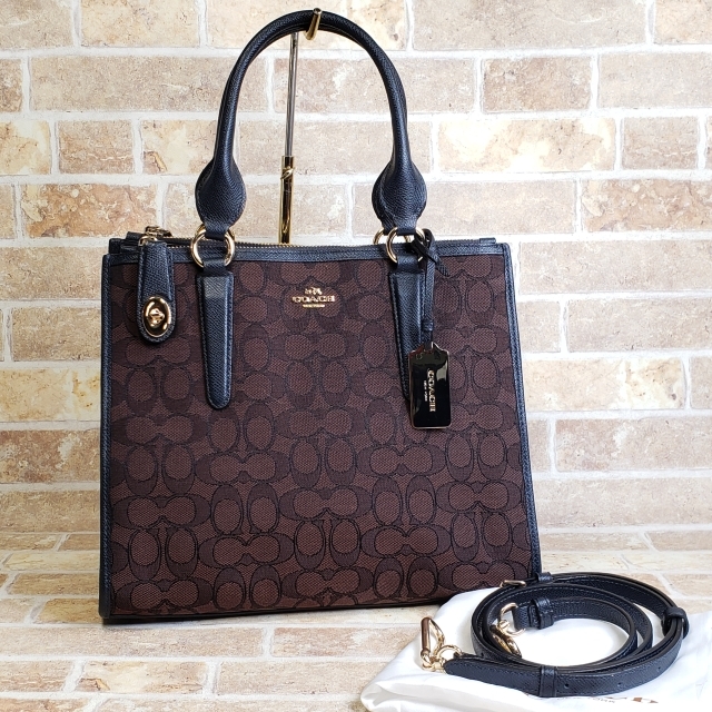 - 美品 コーチ COACH ターンロック シグネチャーキャンバス 2WAY ハンドバッグ ショルダーバッグ ダークブラウン ネイビー