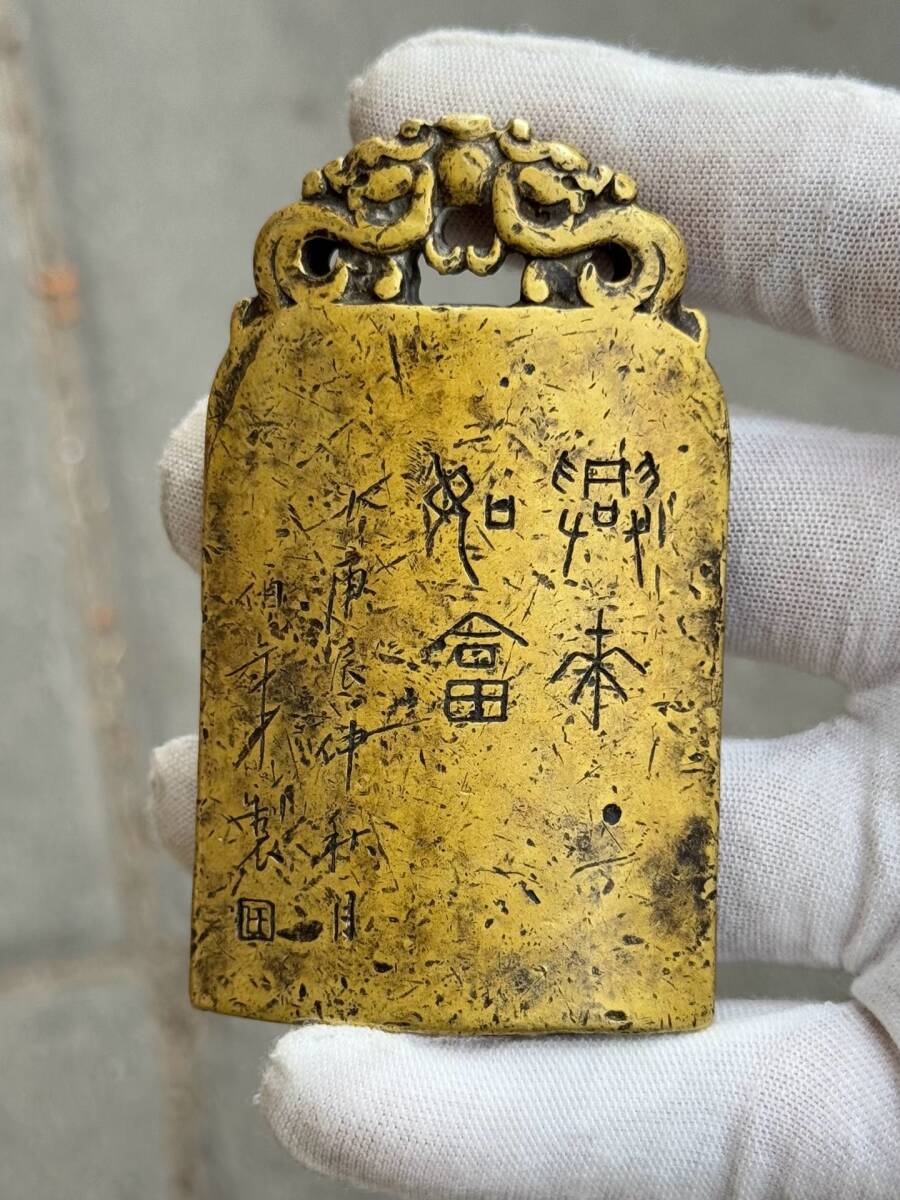 - 『清・古銅彫・任伯府上有龍・亮黄銅・文房具・方章・印鑑』極細工・古賞物・時代物・中国古玩・中国古美術