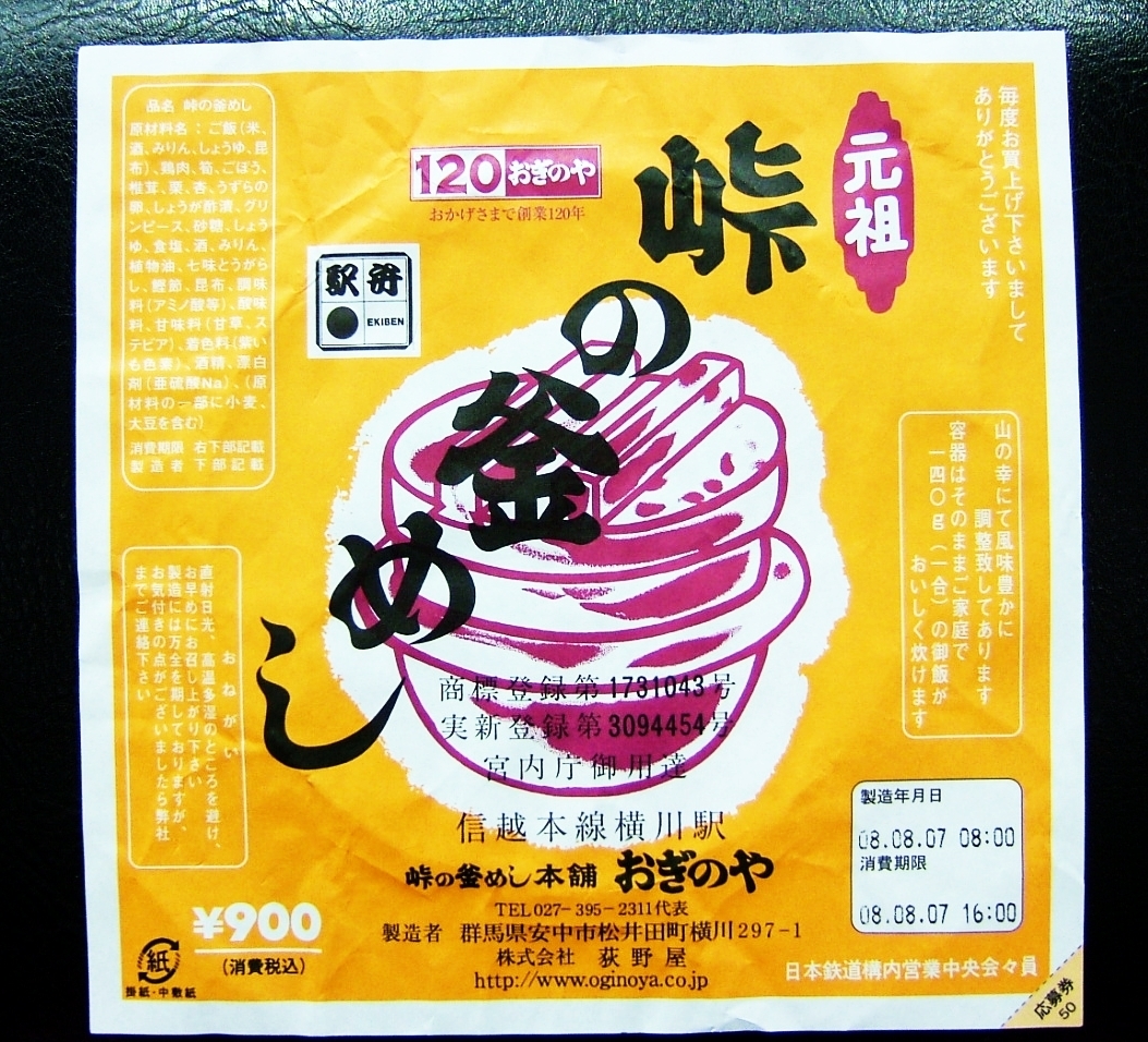 - 駅弁包装紙 信越本線横川駅 峠の釜飯 おぎのや