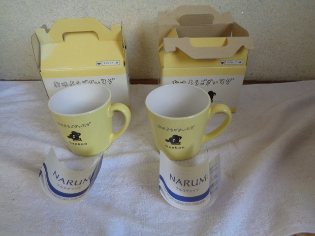 - 住友銀行 記念品/マグカップ 2個まとめて/bankoo-くまのバンクー-/おはようございマグ/ナルミチャイナ/箱入未使用品-長期保管品