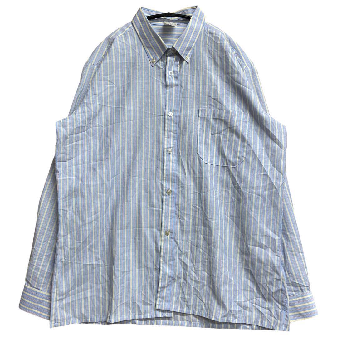 - ヴィンテージ メンズシャツ 青系 L(42)ストライプ柄 春秋 薄手【1951a
