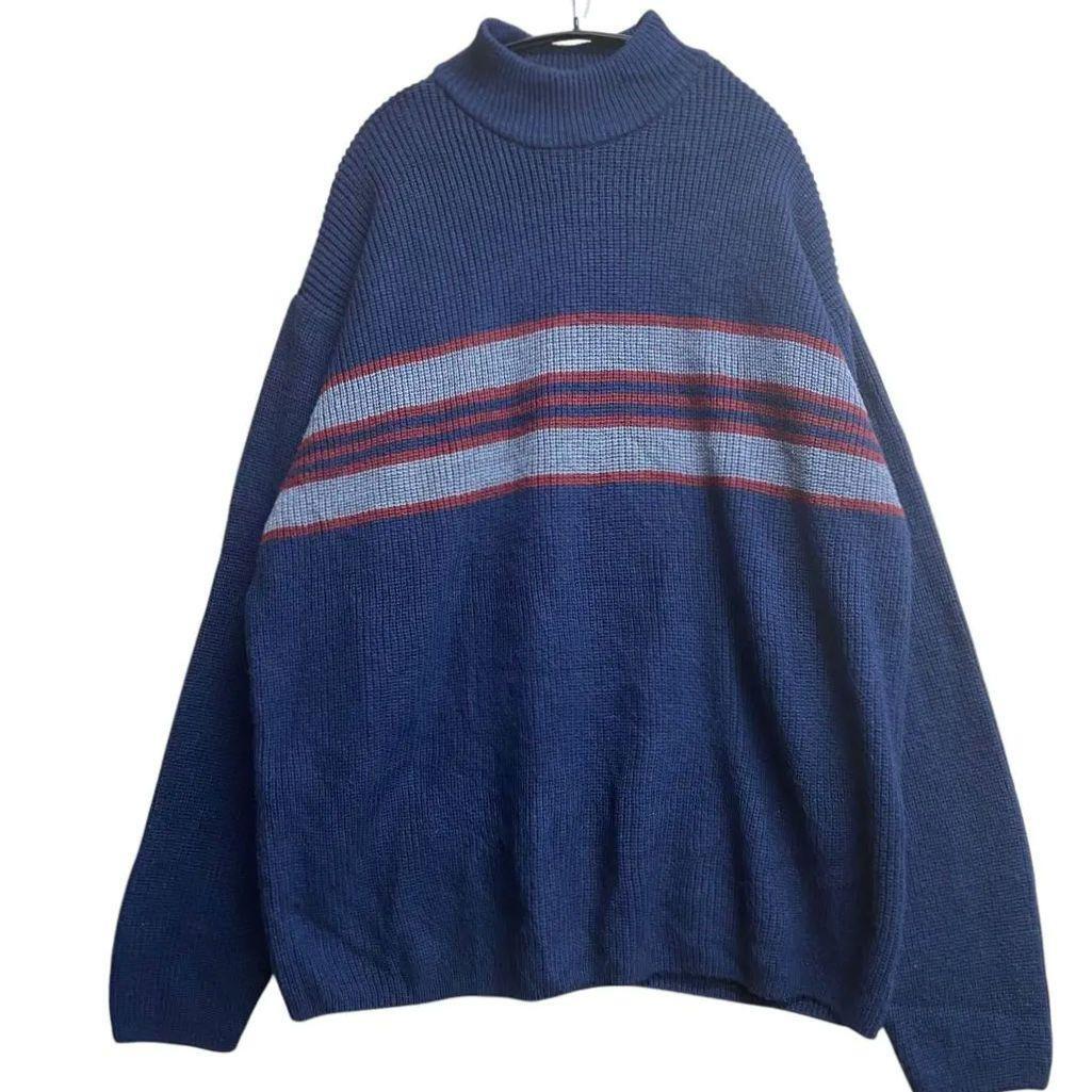 - エアロポステール メンズセーター 紺 XL 厚手 ハーフネック 横縞【2002