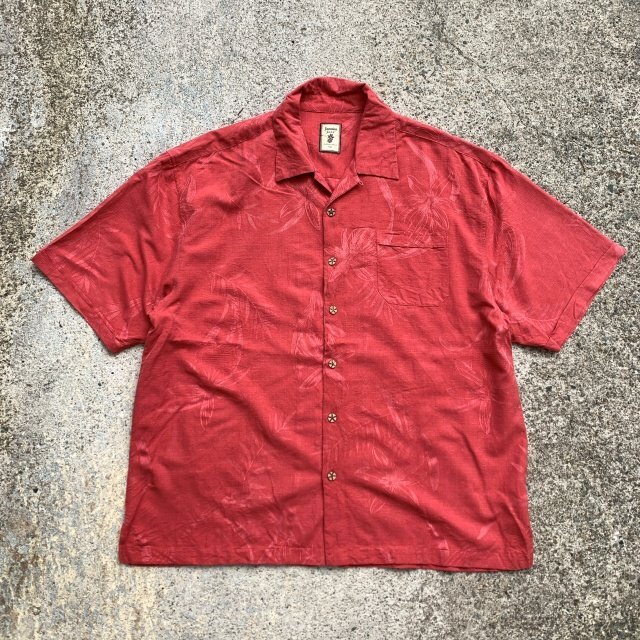 - 【XXL】Jamaica Jaxx オープンカラー 半袖シルクシャツ ピンク■オールド レトロ アメリカ古着 アロハシャツ 開襟 刺繍 総柄