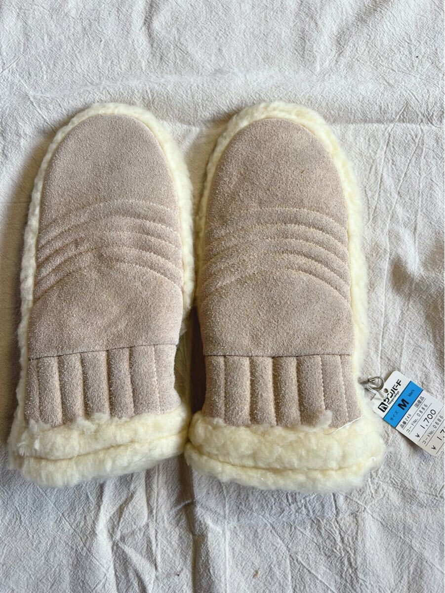 - T2-23-11 未使用 1990年代 ムートン ミトン 手袋 牛革