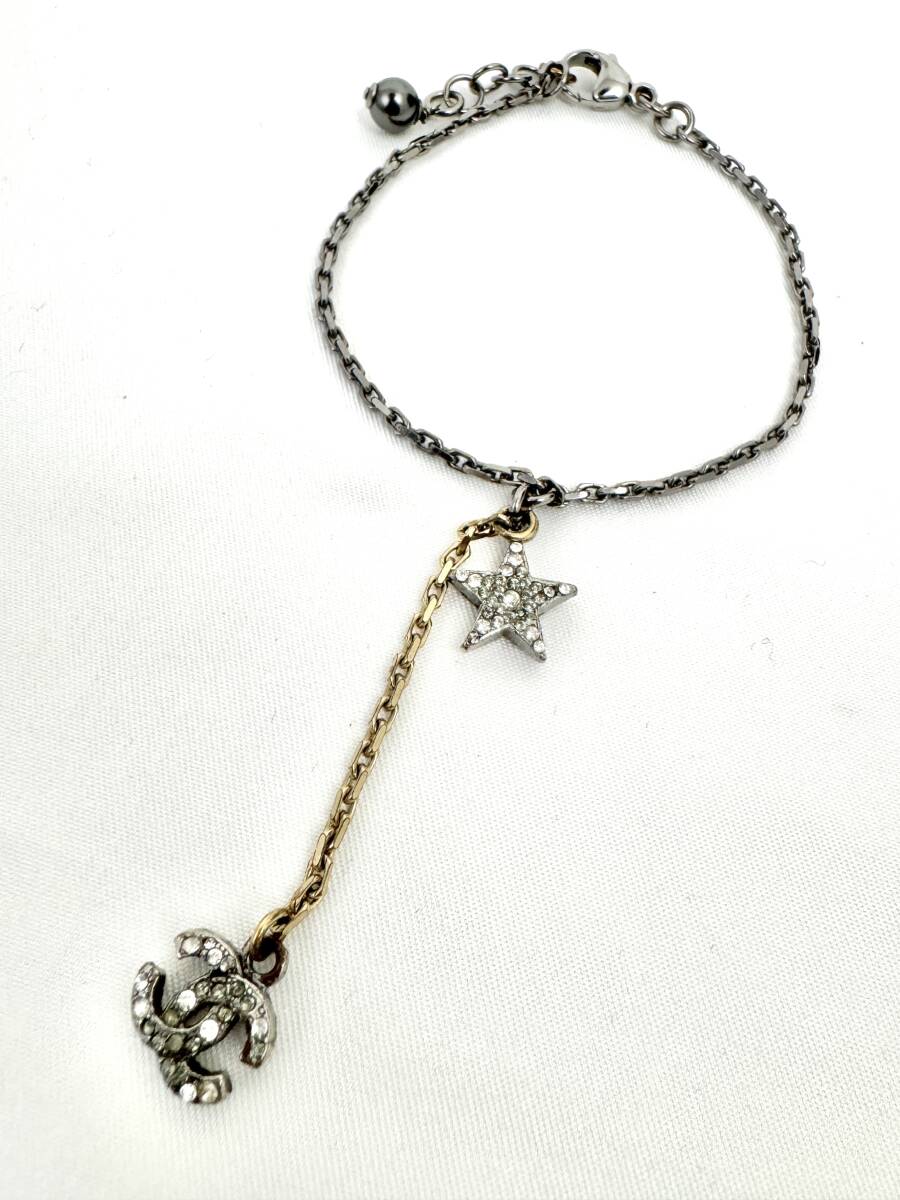 > 7B2318【本物保証】シャネル ブレスレット ココマーク スター ラインストーン チェーン シルバー ゴールド 17B CHANEL