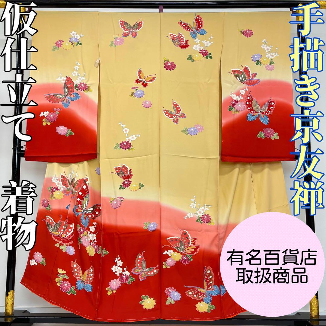 > 【着物と帯 時流】O25312◆仮仕立て 着物◆十三参り 手描き友禅 百貨店取扱