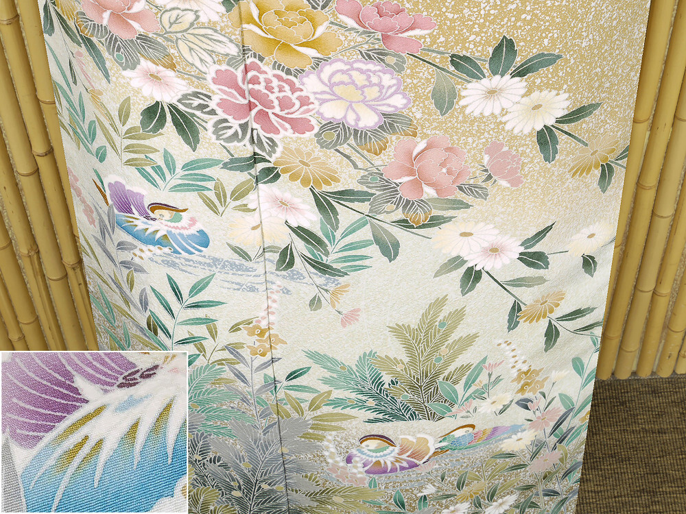 > 【京かんざし】180★特選訪問着 手描き友禅 鴛鴦 丹後ちりめん 躾糸付未着用身丈171 cm裄丈69 cm★即決送料無料!