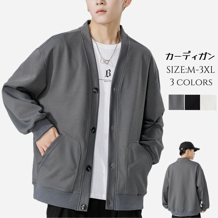 - カーディガン メンズ 長袖 前開き ジャケット Vネック カジュアル ゆったり風 男性 ニット Zwc2678 XXL グレー