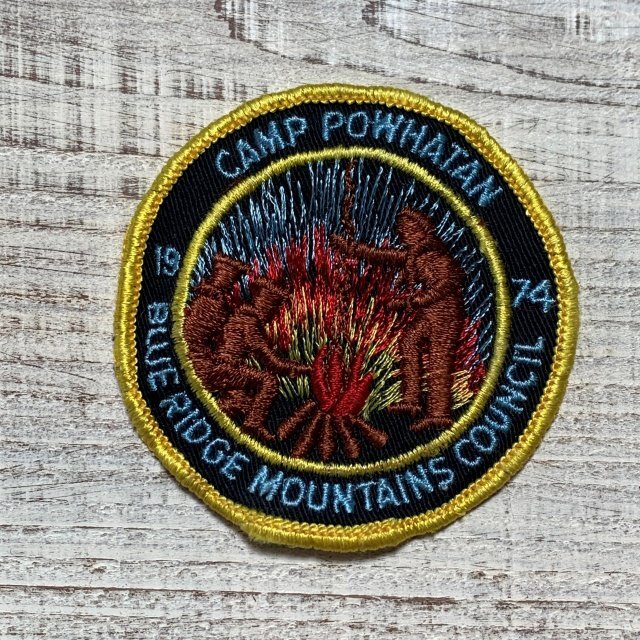 - 【7.6㎝】70s BSA「CAMP POWHATAN」キャンプ 円形 刺繍ワッペン■ビンテージ オールド レトロ アメリカ古着 パッチ ボーイスカウト