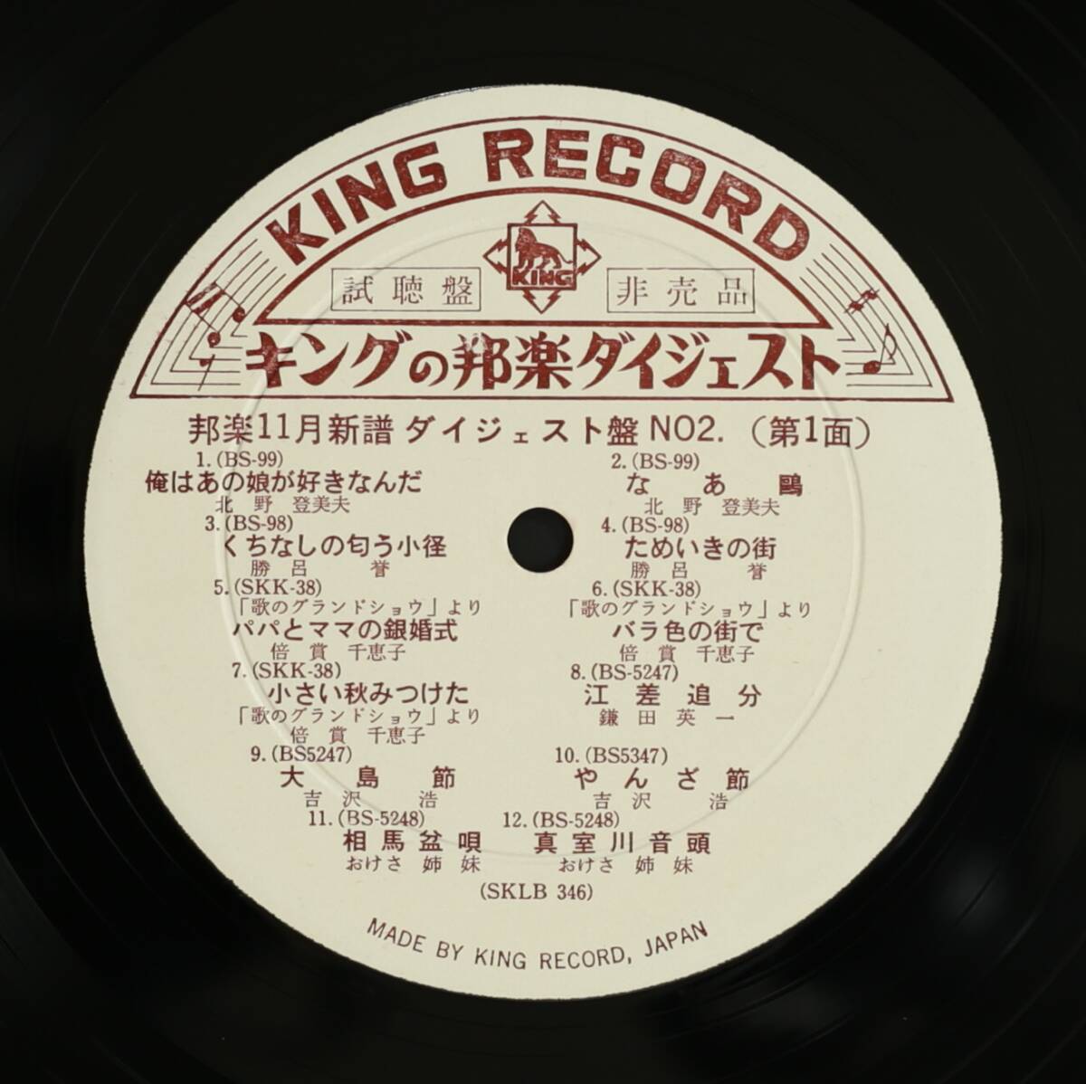 - 【Promo,LP】勝呂誉,北野登美夫,倍賞千恵子,成田雲竹 他/キング 邦楽1964年11月新譜ダイジェスト盤(並良品)