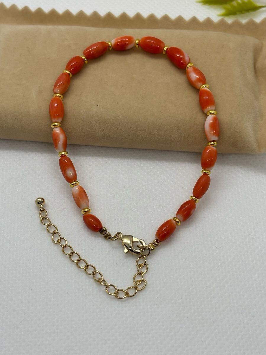 - 天然本珊瑚 オレンジカラー 可愛いブレスレット(s541) アクセサリー 天然石 サンゴ